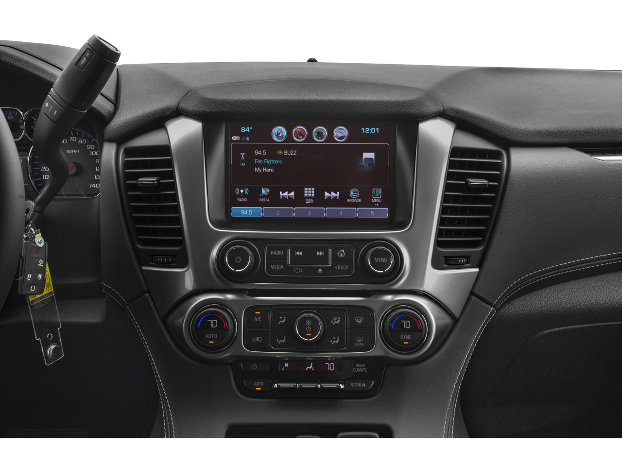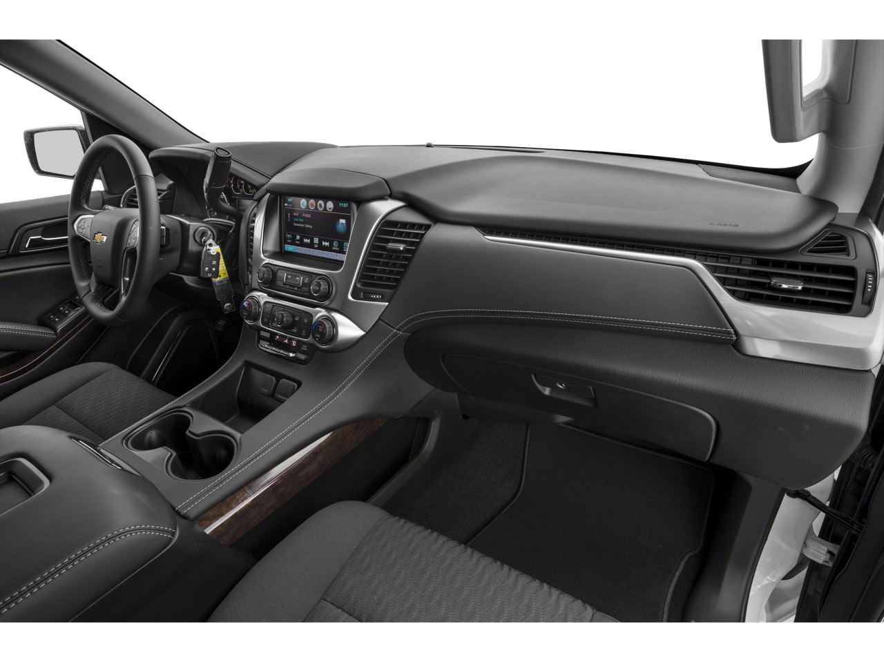 SUN, ENTERTAINMENT AND DESTINATIONS PACKAGE, (CF5) power sunroof, (U42) rear seat DVD entertainment system and (IO6) Chevrolet MyLink radio with navigation, ENTERTAINMENT SYSTEM, REAR SEAT, BLU-RAY/DVD with remote control, overhead display, Wi-Fi wireless projection capability, four 2-channel wireless digital headphones, auxiliary HDMI/MHL audio/video input and 2 USB ports, SEATS, SECOND ROW BUCKET, MANUAL, AUDIO SYSTEM, CHEVROLET MYLINK RADIO WITH NAVIGATION AND 8 DIAGONAL COLOR TOUCH-SCREEN AM/FM stereo with seek-and-scan and digital clock, includes Bluetooth® streaming audio for music and select phones; voice-activated technology for radio and phone; and Shop with the ability to browse, select and install apps to your vehicle. You can customize your content with audio, weather and more; featuring Apple CarPlay and Android Auto capability for compatible phone; 5 USB ports and 1 auxiliary jack, ENGINE, 5.3L V8 ECOTEC3 WITH ACTIVE FUEL MANAGEMENT, DIRECT INJECTION AND VARIABLE VALVE TIMING includes aluminum block construction (355 hp [265 kW] @ 5600 rpm, 383 lb-ft of torque [518 N-m] @ 4100 rpm) (STD), TRANSMISSION, 6-SPEED AUTOMATIC, ELECTRONICALLY CONTROLLED with overdrive and tow/haul mode (STD). Chevrolet LT with Pepperdust Metallic exterior and Cocoa/Dune interior features a 8 Cylinder Engine with 355 HP at 5600 RPM*.