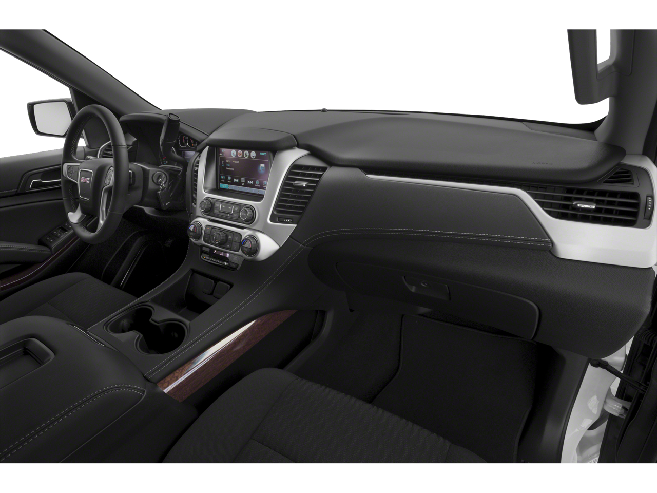 OPEN ROAD PACKAGE, (CF5) power sunroof, (U42) rear seat entertainment system and on SLT (IO6) Audio system with navigation, ENTERTAINMENT SYSTEM, REAR SEAT BLU-RAY/DVD with remote control, overhead display, Wi-Fi wireless projection capability, four 2-channel wireless digital headphones, auxiliary HDMI/MHL audio/video input and 2 USB ports, AUDIO SYSTEM, 8" DIAGONAL COLOR TOUCH SCREEN NAVIGATION WITH GMC INFOTAINMENT SYSTEM AM/FM/SiriusXM stereo with seek-and-scan and digital clock, includes Bluetooth® streaming audio for music and select phones; voice-activated technology for radio and phone; and Shop. Featuring Apple CarPlay® and Android Auto® capability for compatible phone; 5 USB ports and 1 auxiliary jack, ENGINE, 5.3L ECOTEC3 V8 with Active Fuel Management, Direct Injection and Variable Valve Timing, includes aluminum block construction (355 hp [265 kW] @ 5600 rpm, 383 lb-ft of torque [518 N-m] @ 4100 rpm) (STD), TRANSMISSION, 6-SPEED AUTOMATIC, ELECTRONICALLY CONTROLLED with overdrive, tow/haul mode and tap up/tap down shifting (STD). GMC SLT with SUMMIT WHITE exterior and JET BLACK interior features a 8 Cylinder Engine with 355 HP at 5600 RPM*.