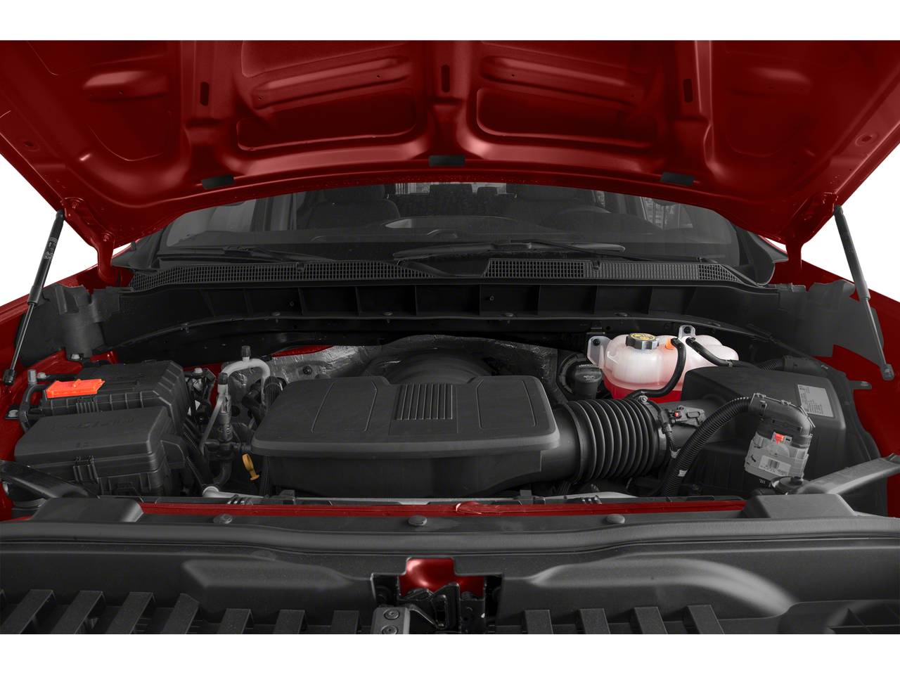 ENGINE, 5.3L ECOTEC3 V8 with Active Fuel Management, (355 hp [265 kW] @ 5600 rpm, 383 lb-ft of torque [518 Nm] @ 4100 rpm), CUSTOM CONVENIENCE PACKAGE includes (BTV) Remote Start with (UTJ) content theft alarm, (C49) rear-window defogger, (UF2) bed LED cargo area lighting and (QT5) EZ Lift power lock and release tailgate, AUDIO SYSTEM, CHEVROLET INFOTAINMENT 3 SYSTEM 7 diagonal color touchscreen, AM/FM stereo. Additional features for compatible phones include: Bluetooth® audio streaming for 2 active devices, voice command pass-through to phone, Apple CarPlay and Android Auto capable. (STD), TRANSMISSION, 6-SPEED AUTOMATIC, ELECTRONICALLY CONTROLLED (STD). Chevrolet Custom Trail Boss with Satin Steel Metallic exterior and Jet Black interior features a 8 Cylinder Engine with 285 HP at 5300 RPM*.