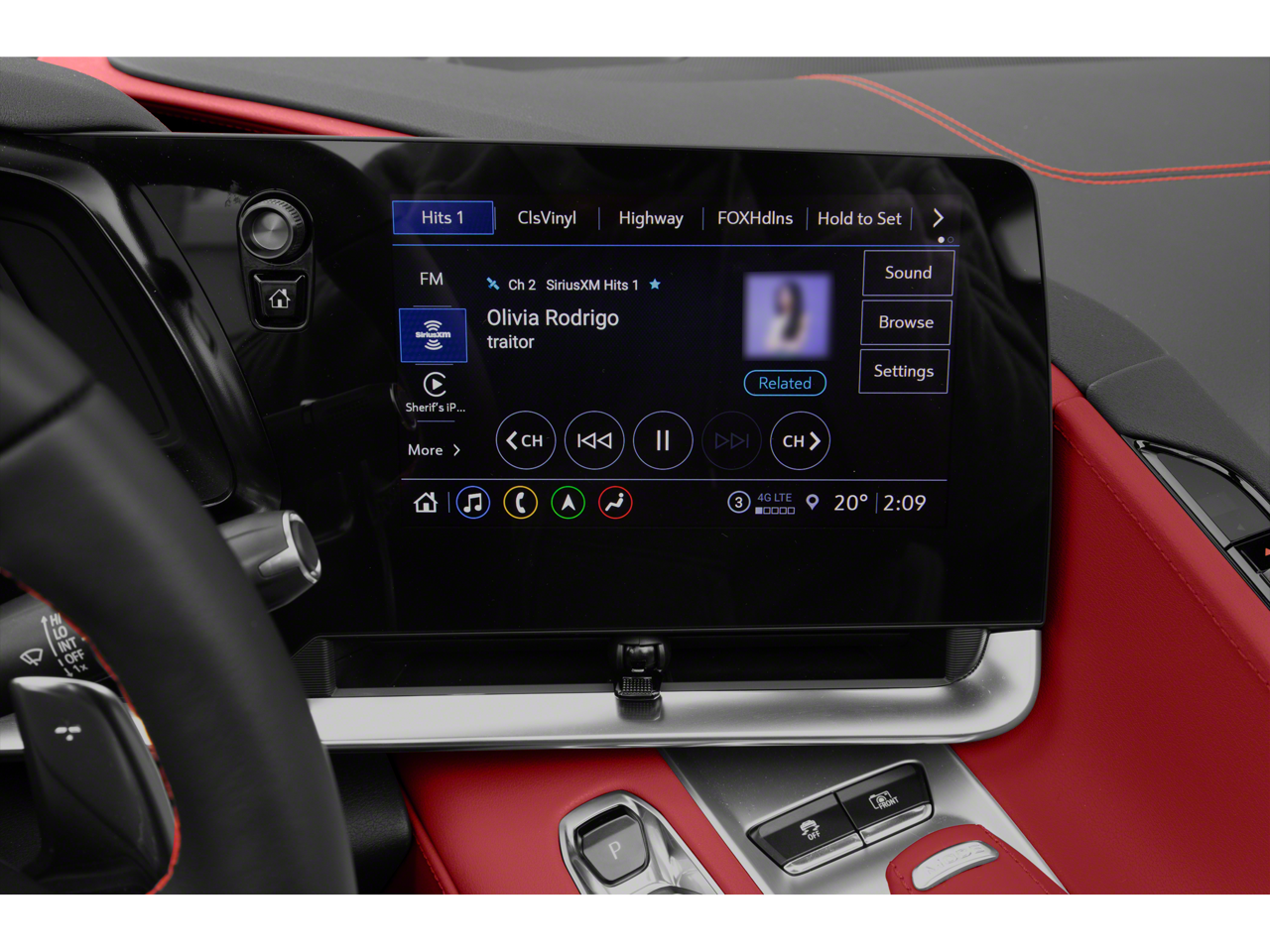 Z51 PERFORMANCE PACKAGE includes (J55) Z51 performance brakes, (FE3) Z51 performance suspension, (NPP) performance exhaust, (GM7) performance rear axle ratio, (G96) Electronic Limited Slip Differential (eLSD), (T0A) Z51 rear spoiler, front splitter, (XFQ) 245/35ZR19 front and 305/30ZR20 rear, blackwall, high performance tires and (V08) heavy-duty cooling system, AUDIO SYSTEM, CHEVROLET INFOTAINMENT 3 PREMIUM SYSTEM WITH CONNECTED NAVIGATION 8 diagonal HD color touchscreen, AM/FM stereo, Bluetooth® audio streaming for 2 active devices, Apple CarPlay and Android Auto capable, enhanced voice recognition, additional memory for in-vehicle apps, cloud connected personalization for select infotainment and vehicle settings. WHEELS, 19 X 8.5 (48.3 CM X 21.6 CM) FRONT AND 20 X 11 (50.8 CM X 27.9 CM) REAR 5-OPEN-SPOKE CARBON FLASH-PAINTED ALUMINUM WITH MACHINED EDGE, ENGINE, 6.2L V8 DI, HIGH-OUTPUT Variable Valve Timing (VVT), Active Fuel Management (AFM) (490 hp [365.4 kW] @ 6450 rpm, 465 lb-ft of torque [627.8 N-m] @ 5150 rpm) (STD), TRANSMISSION, 8-SPEED DUAL CLUTCH, INCLUDES MANUAL AND AUTO MODES (STD). Chevrolet 1LT with Rapid Blue exterior and Jet Black interior features a 8 Cylinder Engine with 490 HP at 6450 RPM*.