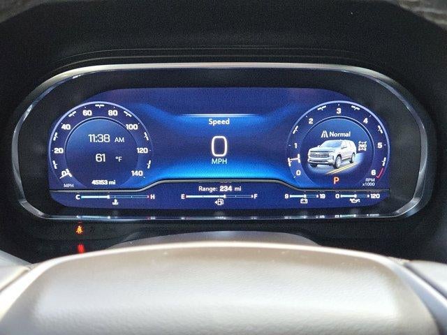 LUXURY PACKAGE includes (WPD) Driver Alert Package content, (UV2) HD Surround Vision, (UKK) Rear Pedestrian Alert, (A45) memory settings, (DXR) outside heated power-adjustable, power-folding, body-color mirrors with driver-side auto-dimming and integrated turn signal indicators, (N38) power tilt and telescopic steering column, (KI3) heated steering wheel, (KA6) second row outboard heated seats, (ATT) second row power 60/40 split-folding bench seats and (AS8) third row power 60/40 split-folding bench seats, SEATS, SECOND ROW BUCKET, POWER RELEASE, LPO, ALL-WEATHER FLOOR LINERS, 1ST AND 2ND ROWS (dealer-installed), AUDIO SYSTEM, CHEVROLET INFOTAINMENT 3 PREMIUM SYSTEM WITH GOOGLE BUILT-IN 10.2 diagonal HD color touchscreen, includes multi-touch display, AM/FM stereo, Bluetooth® streaming audio for music and most phones; featuring wireless Android Auto and Apple CarPlay capability for compatible phones, advanced voice recognition, in-vehicle apps, personalized profiles for infotainment and vehicle settings.) (STD), STEERING WHEEL, HEATED, ENGINE, 5.3L ECOTEC3 V8 with Dynamic Fuel Management, Direct Injection and Variable Valve Timing, includes aluminum block construction (355 hp [265 kW] @ 5600 rpm, 383 lb-ft of torque [518 Nm] @ 4100 rpm) (STD), TRANSMISSION, 10-SPEED AUTOMATIC electronically controlled with overdrive, includes Traction Select System including tow/haul (STD), DRIVER ALERT PACKAGE includes (UKC) Lane Change Alert with Side Blind Zone Alert and (UFG) Rear Cross Traffic Alert, SUSPENSION, PREMIUM SMOOTH RIDE (STD). Chevrolet Z71 with Black exterior and Gideon/Very Dark Atmosphere interior features a 8 Cylinder Engine with 355 HP at 5600 RPM*.