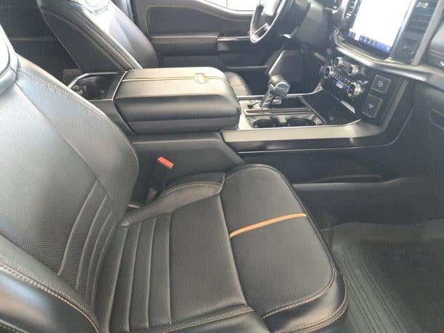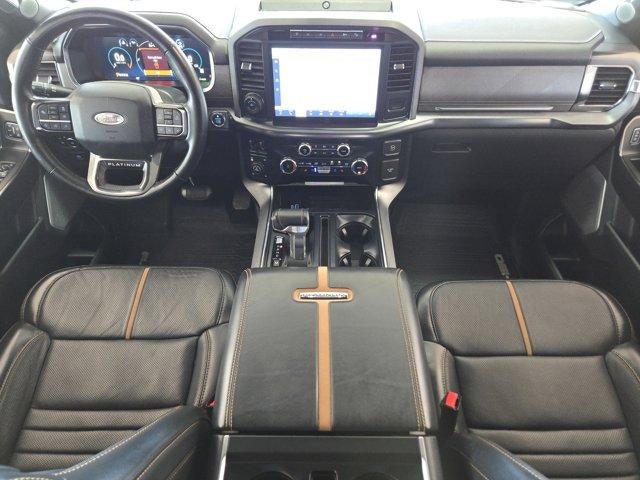 EQUIPMENT GROUP 701A HIGH Ford BlueCruise 1.0, forward sensing system, Active Park Assist 2.0, 360 Degree Camera, trailer reverse guidance, Radio: B&O Unleashed Sound System by Bang & Olufsen, HD Radio and 18 speakers including subwoofer, Pro Trailer Backup Assist & Pro Trailer Hitch Assist, Bed Utility Package, BoxLink, 4 premium locking cleats, LED Box Lighting, Tailgate Step w/Tailgate Work Surface, Power Tailgate, ENGINE: 3.5L POWERBOOST FULL-HYBRID V6 Electronic Locking w/3.73 Axle Ratio, TWIN PANEL MOONROOF. Ford Platinum with Agate Black Metallic exterior and Black interior features a V6 Cylinder Engine with 400 HP at 6000 RPM*.