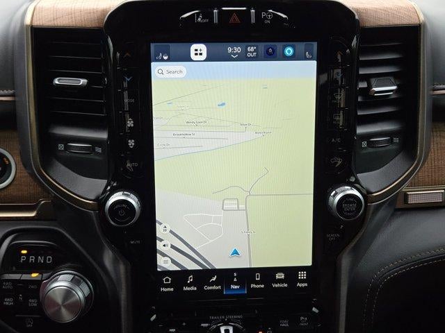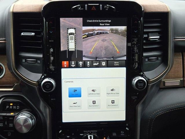 LONGHORN LEVEL 1 EQUIPMENT GROUP Adaptive Cruise Control w/Stop & Go, Surround View Camera System, Blind Spot & Cross Path Detection, Parallel & Perp Park Assist w/Stop, LED CHMSL Lamp, ParkSense Front/Rear Park Assist w/Stop, Wireless Charging Pad, Pick-Up Box Lighting, Pedestrian Emergency Braking, MOPAR Spray In Bedliner, harman/kardon® 19 Speaker Premium Sound, Power Running Boards, Head Up Display, Tailgate Ajar Warning Lamp, Digital Rearview Mirror, Lane Keep Assist, ENGINE: 5.7L V8 HEMI MDS VVT ETORQUE Active Noise Control System, Heavy Duty Engine Cooling, Passive Tuned Mass Damper, GVWR: 7,100 lbs, Dual Rear Exhaust w/Bright Tips, HEMI Badge, 18" Aluminum Spare Wheel, WHEELS: 22" X 9" ALUMINUM PAINTED/POLISHED Tires: 285/45R22XL BSW All Season, 4-CORNER AIR SUSPENSION, DUAL-PANE PANORAMIC SUNROOF LED Dome/Reading Lamp, Dome Dual LED Reading Lamp, CHROME POWER-FOLD TRAILER TOW MIRRORS Mirror-Mounted Aux Reverse Lamps, Mirror Clearance/Running Lights, Trailer Tow Mirrors, TRANSMISSION: 8-SPEED AUTOMATIC (8HP75). Ram Longhorn with Ivory White Tri-Coat Pearlcoat exterior and Black/New Saddle interior features a 8 Cylinder Engine with 395 HP at 5600 RPM*.
