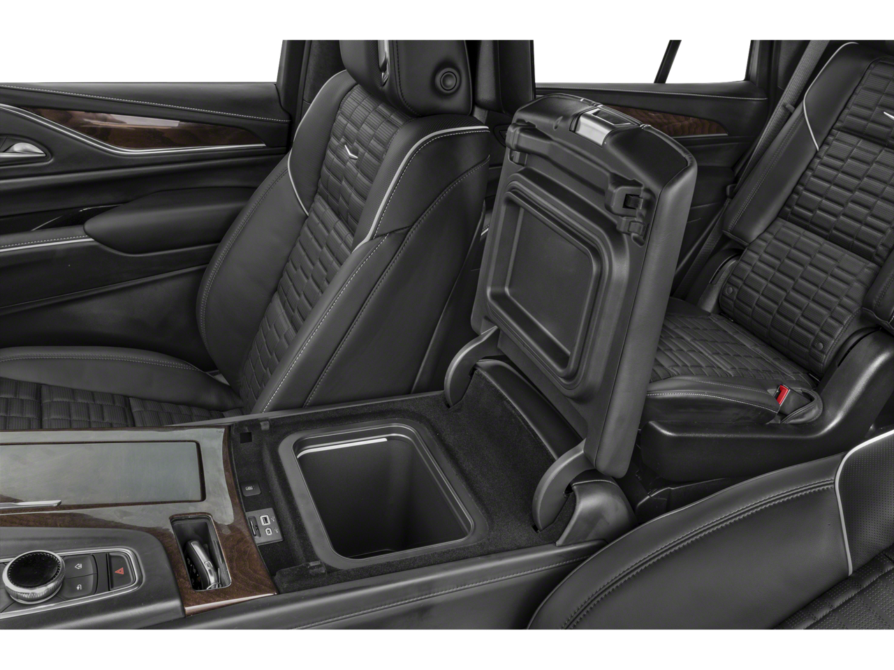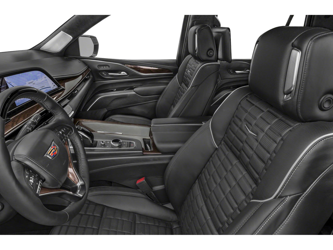 TOURING PACKAGE includes (AF7) front and rear, soft-close doors, (B7G) illuminating sill plates and (F47) Air Ride Adaptive suspension, ASSIST STEPS, POWER-RETRACTABLE WITH PERIMETER LIGHTING, LPO, FLOOR LINER PACKAGE includes (CAV) All-Weather integrated cargo liner, LPO and (RIB) All-Weather Floor Liner Package, 1st, 2nd and 3rd rows, LPO, SUSPENSION, AIR RIDE ADAPTIVE, OLED INFOTAINMENT EXPERIENCE WITH NAVIGATION AM/FM/SiriusXM with 360L with 16.9" diagonal color information display (displays and controls navigation, music and all features and functions of the vehicle), personalized profiles for each driver's settings, Natural Voice Recognition, Phone Integration for Wireless Apple CarPlay®/Wireless Android Auto® capability for compatible phone, Connected Apps and Teen Driver (STD), ENGINE, 6.2L V8 WITH DYNAMIC FUEL MANAGEMENT Direct Injection and Variable Valve Timing, includes aluminum block construction (420 hp [313.2 kW] @ 5600 rpm, 460 lb-ft of torque [623.7 Nm] @ 4100 rpm) (STD), TRANSMISSION, 10-SPEED AUTOMATIC electronically controlled with overdrive, tow/haul mode and tap up/tap down shifting (STD). Cadillac 4WD Sport with Dark Emerald Metallic exterior and Whisper Beige with Jet Black accents interior features a 8 Cylinder Engine with 420 HP at 5600 RPM*.